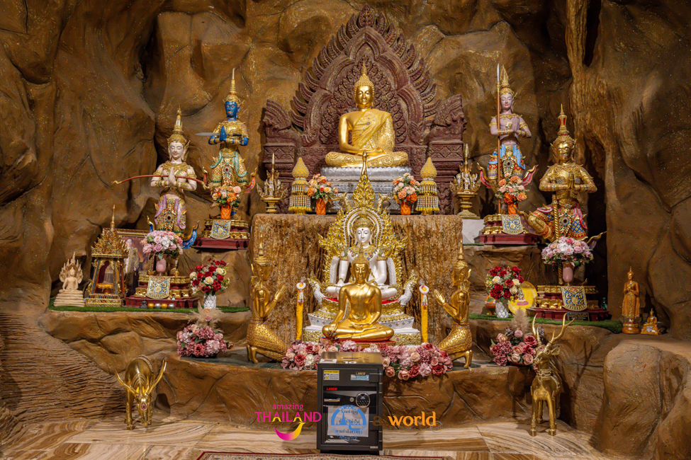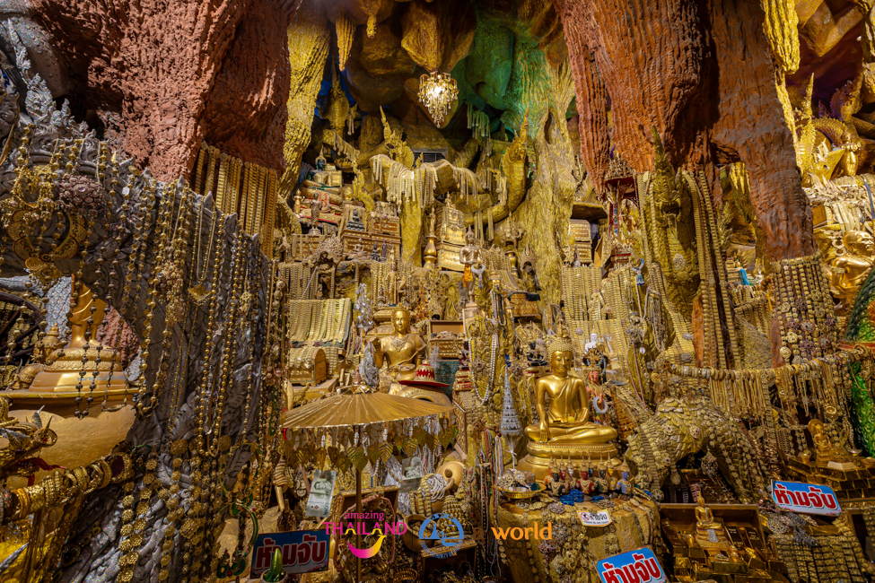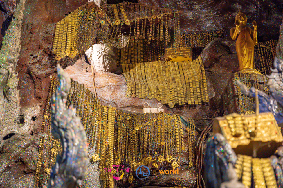 เมื่อเดินชมมาจนสุดทางบริเวณด้านหลังองค์พระประธานจะได้พบกับคลังมหาสมบัติใต้วังบาดาลที่เต็มไปด้วยเครื่องประดับทั้งเพชรนิลจินดา แก้วแหวนเงินทอง ส่องประกายเหลืองอร่าม สัมผัสได้ถึงความขลังและความศักดิ์สิทธิ์ เป็นอีกจุดหนึ่งที่สร้างความตื่นตาตื่นใจ