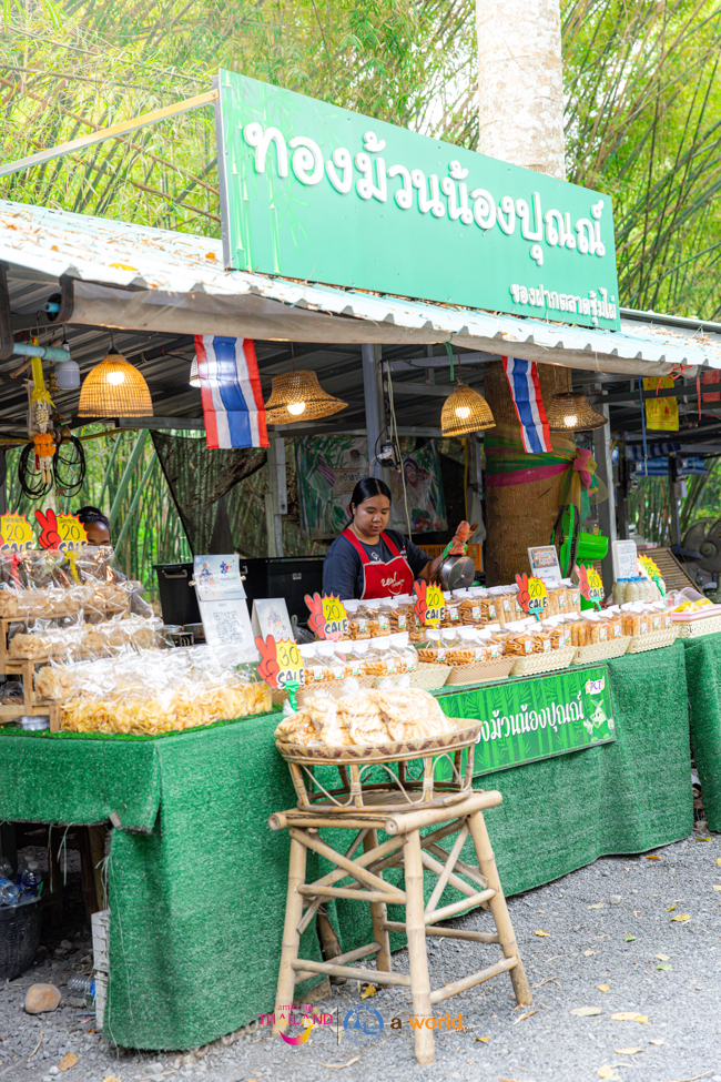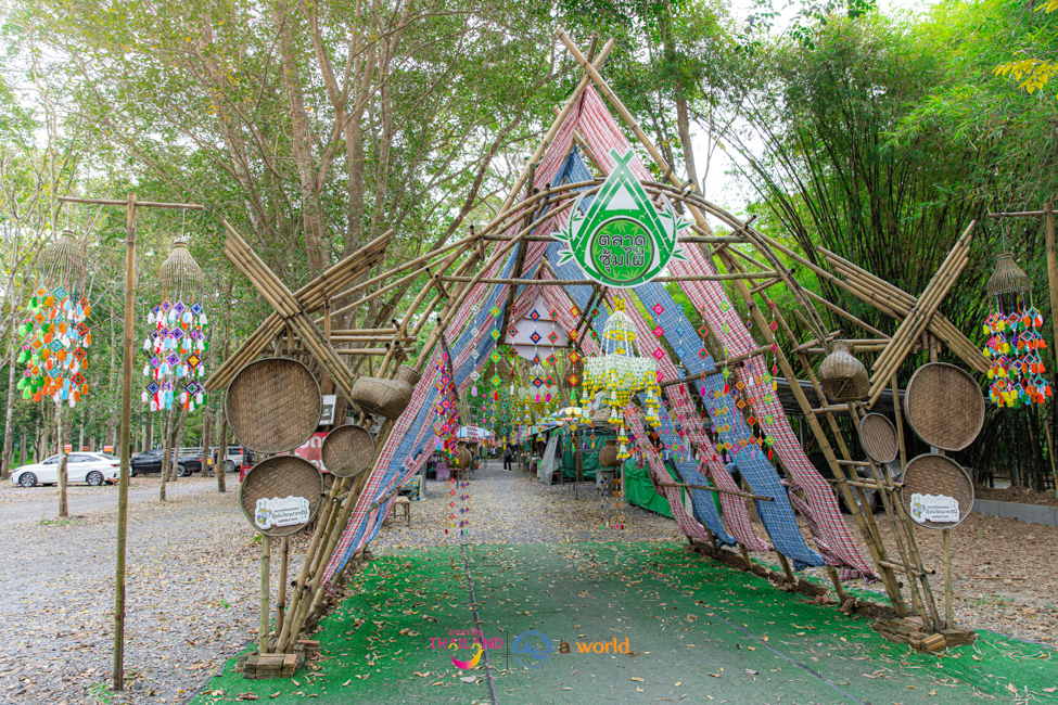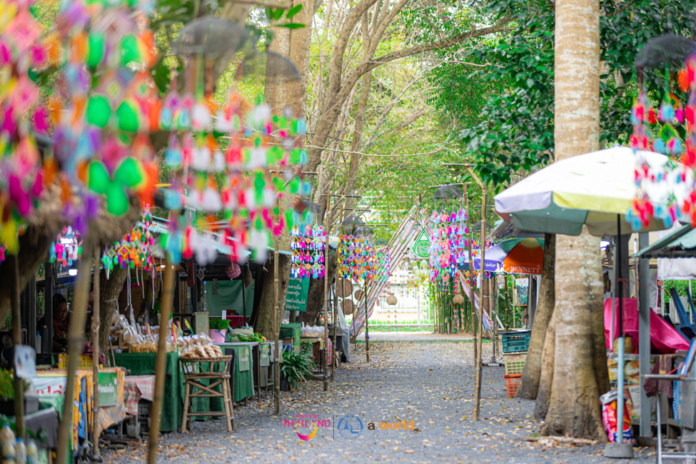 ส่วนบริเวณด้านหน้าวัดจะมีตลาดนัดซุ้มต้นไผ่ เป็นตลาดนัดชุมชนจำหน่ายสินค้าพื้นบ้านมีสินค้าผลผลิตจากคนในท้องถิ่น ไม่ว่าจะเป็นผักผลไม้ที่ปลูกแบบออร์แกนิก ผักปลอดสารพิษ จำหน่ายในราคาย่อมเยาว์ รวมถึงมีอาหารท้องถิ่น ขนมต่างๆ เหมาะกับการซื้อเป็นของฝากกลับบ้าน โดยเฉพาะในวันเสาร์ อาทิตย์ และวันหยุดนักขัตฤกษ์จะมีสินค้าจำหน่ายมากเป็นพิเศษ