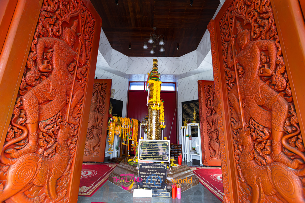 บริเวณศาลหลักเมืองประกอบด้วยปรางค์องค์ใหญ่ที่ตั้งอยู่ตรงกลาง ขนาดฐาน 6.60 เมตร สูง 19.10 เมตร และบันไดทางขึ้นมีรูปปูนปั้นพญานาค โดยรอบมีปรางค์สี่ทิศ อันเป็นที่ประดิษฐานของสิ่งศักดิ์สิทธิ์หรือท้าวจตุโลกบาลทั้งสี่ทิศ เริ่มต้นจาก ปรางค์ทิศเหนือเป็นที่ประดิษฐานท้าวเวสสุวรรณ เทพเจ้าแห่งยักษ์ที่คอยปกป้องคุ้มครองโลกมนุษย์ ขจัดปัดเป่าสิ่งชั่วร้าย แคล้วคลาดปลอดภัย รวมถึงประทานโชคลาภ เงินทอง วาสนา ปรางค์ทางทิศใต้เป็นที่ประดิษฐานท้าววิรุฬหก เทพเจ้าผู้พิทักษ์พระพุทธศาสนา เสริมสร้างอำนาจบารมี ป้องกันภัยอันตรายและส่งเสริมความเจริญก้าวหน้าในหน้าที่การงาน ปรางค์ทิศตะวันออกเป็นที่ประดิษฐานท้าวธตรฐ เทพเจ้าแห่งดนตรีและศิลปะ มีหน้าที่ดูแลคนธรรพ์และเชื่อว่าช่วยส่งเสริมด้านศิลปะการแสดง ดนตรีและความมีชื่อเสียง และปรางค์ทิศตะวันตกเป็นที่ประดิษฐานท้าววิรูปักษ์ เทพเจ้าผู้เป็นใหญ่แห่งพญานาค เป็นที่เคารพบูชาเพื่อความเป็นสิรมงคลและป้องกันภัยจากสัตว์มีพิษ