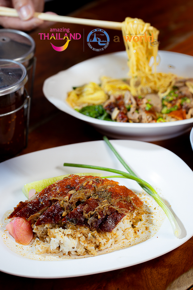 ในส่วนของเนื้อเป็ดนั้นด้วยความอร่อยของการย่างเป็ดสูตรเฉพาะตัวที่ให้หนังกรอบเนื้อนุ่มเหนียวกำลังดี รสชาติเข้มข้นหอมอบอวลทานกับน้ำซุปที่เคี่ยวจนหวาน ส่วนเส้นบะหมี่นั้นนุ่มอร่อยแบบไม่เหมือนใคร ทำให้แทบทุกเมนูเป็ดของร้านเป็นเมนูเด็ดที่คนมักสั่งทาน