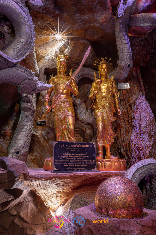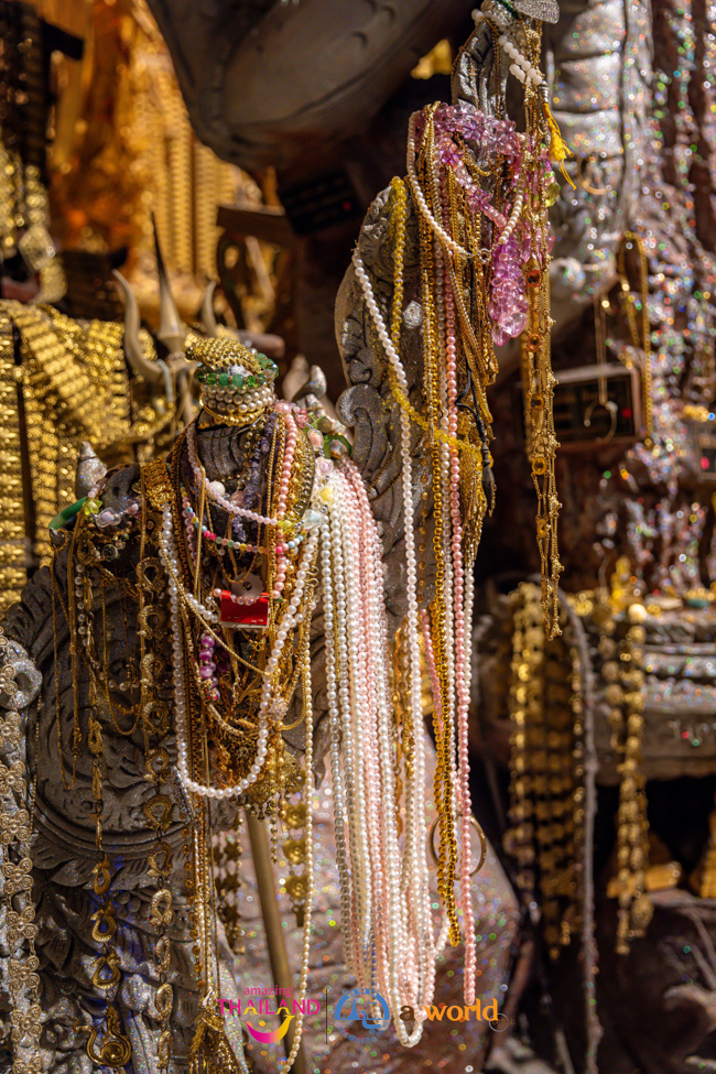 เมื่อเดินชมมาจนสุดทางบริเวณด้านหลังองค์พระประธานจะได้พบกับคลังมหาสมบัติใต้วังบาดาลที่เต็มไปด้วยเครื่องประดับทั้งเพชรนิลจินดา แก้วแหวนเงินทอง ส่องประกายเหลืองอร่าม สัมผัสได้ถึงความขลังและความศักดิ์สิทธิ์ เป็นอีกจุดหนึ่งที่สร้างความตื่นตาตื่นใจ
